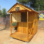 Our Play Houses come either as pallet louvre, new louvre, knotty pine or log cabins with sizes starting from 1.5m x 1.5m to big sizes made to specific customer requirements and all come standard with corrugated roof sheets.